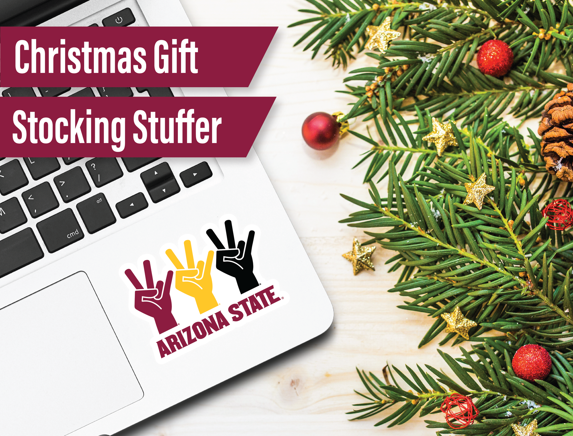 Show your pride with Arizona State University sticker decals. Sticker set includes 10 mug-sized (3 inch), 2 car window sized (5 inch), and 2 keyboard-size (mini) Arizona State Sun Devils die-cut decals. Arizona State decals are UV resistant and waterproof decals perfect for any flat surface including car windows, water bottles, phone cases, laptops, notebooks, luggage, and more. Designed for interior and exterior use. Perfect Christmas, birthday, graduation gift for ASU fans of all ages. Forks up!