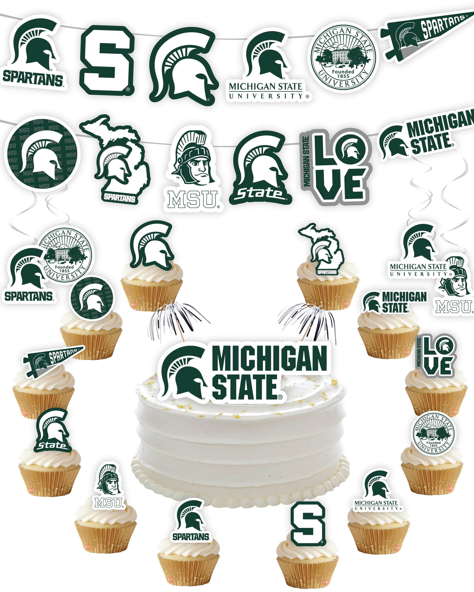 Michigan State Spartans Party Decorations with Banner and Cupcake Toppers (42 Pieces)