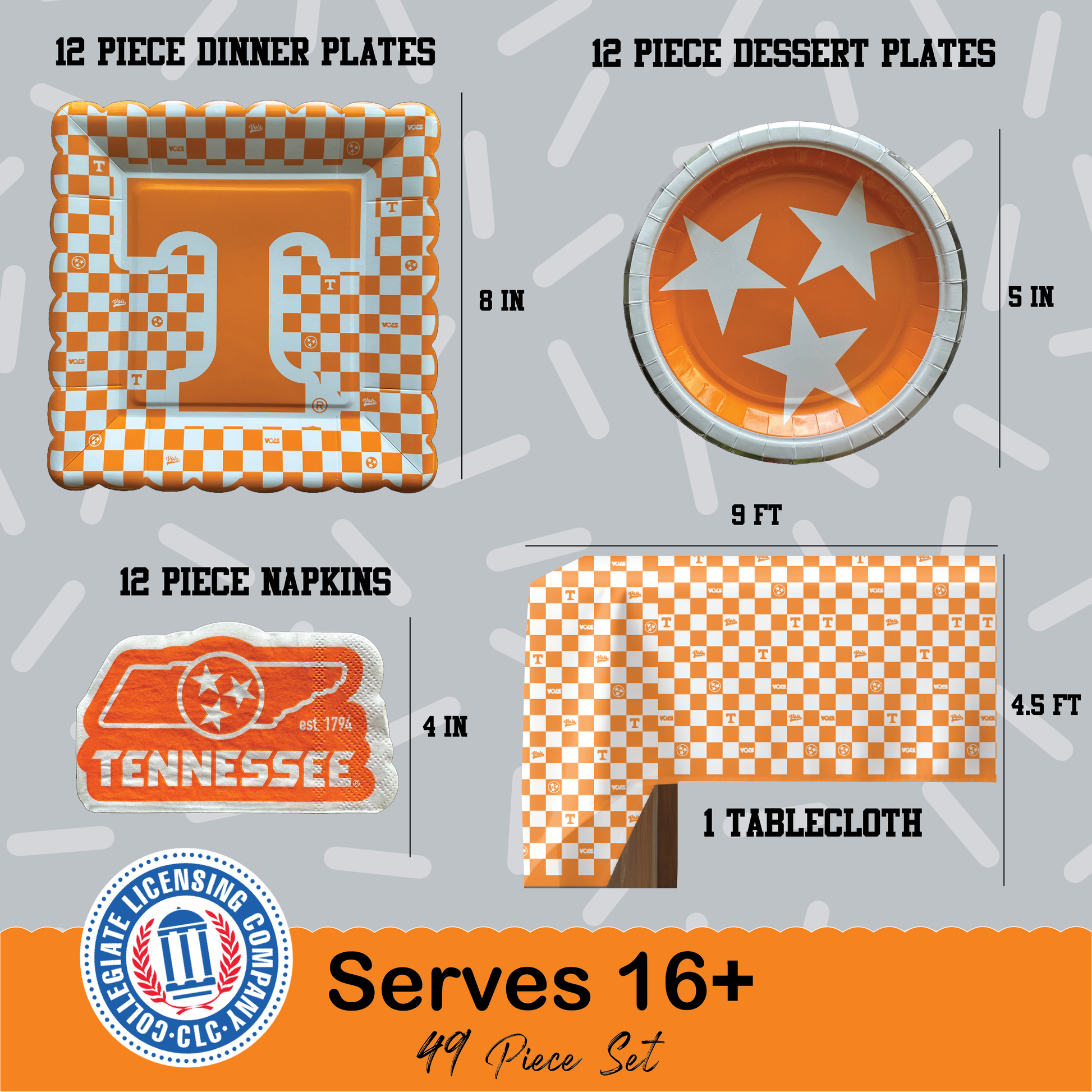 Tennessee Vols Tableware Set with 32 Plates, 16 Napkins and 1 Tablecloth (Serves 16)