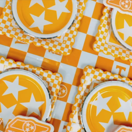 Kickoff your next birthday, graduation, or football tailgating party with University of Tennessee party supplies. This tableware party set is uniquely designed for an effortlessly memorable UT party. You'll enjoy a variety of licensed design which are precision-cut and professionally printed with vibrant team colors on sturdy, recyclable material with foil embellishments. Guests are sure to remember and compliment your Tennessee Vols party theme. Go Vols!