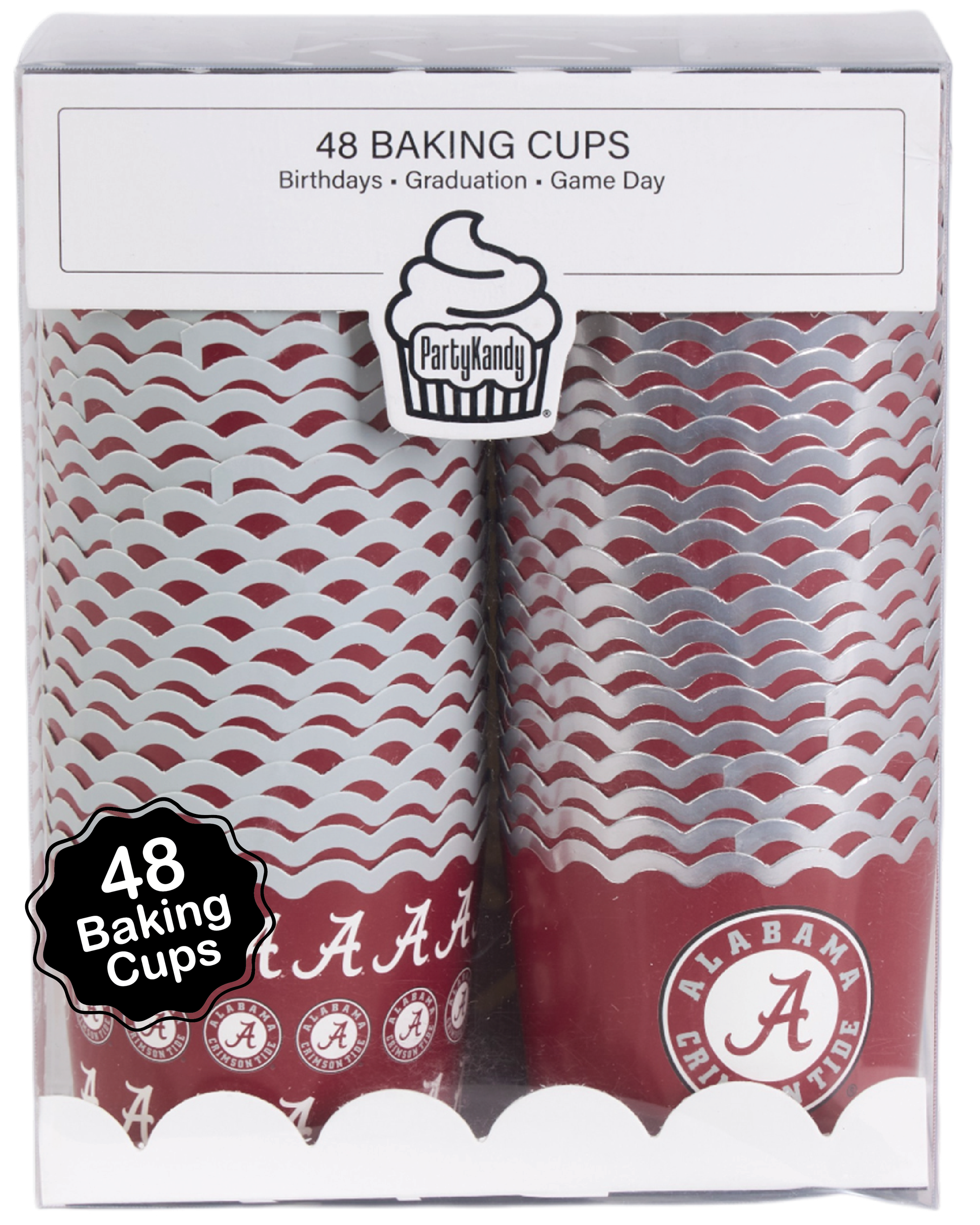 Show off your pride with these 48-count University of Alabama Baking Cups, designed to bring spirit and fun to every celebration. Whether you're serving cupcakes, muffins, party snacks, or creative game day treats, these officially licensed Alabama Crimson Tide baking cups add the perfect touch of team colors. Wrap them up for a coordinated party favor. Ideal decorations for Bama birthdays, graduations, tailgating parties to show your team spirit. Pair with color-themed party banners, cupcake toppers, plates, and napkins also made by PartyKandy. Makes for a picture-perfect party gift for men and women who love UA merch for a picture-perfect event. 3 inch paper cups (5 ounces) with vibrant team colors and foil embellishments. Roll Tide!