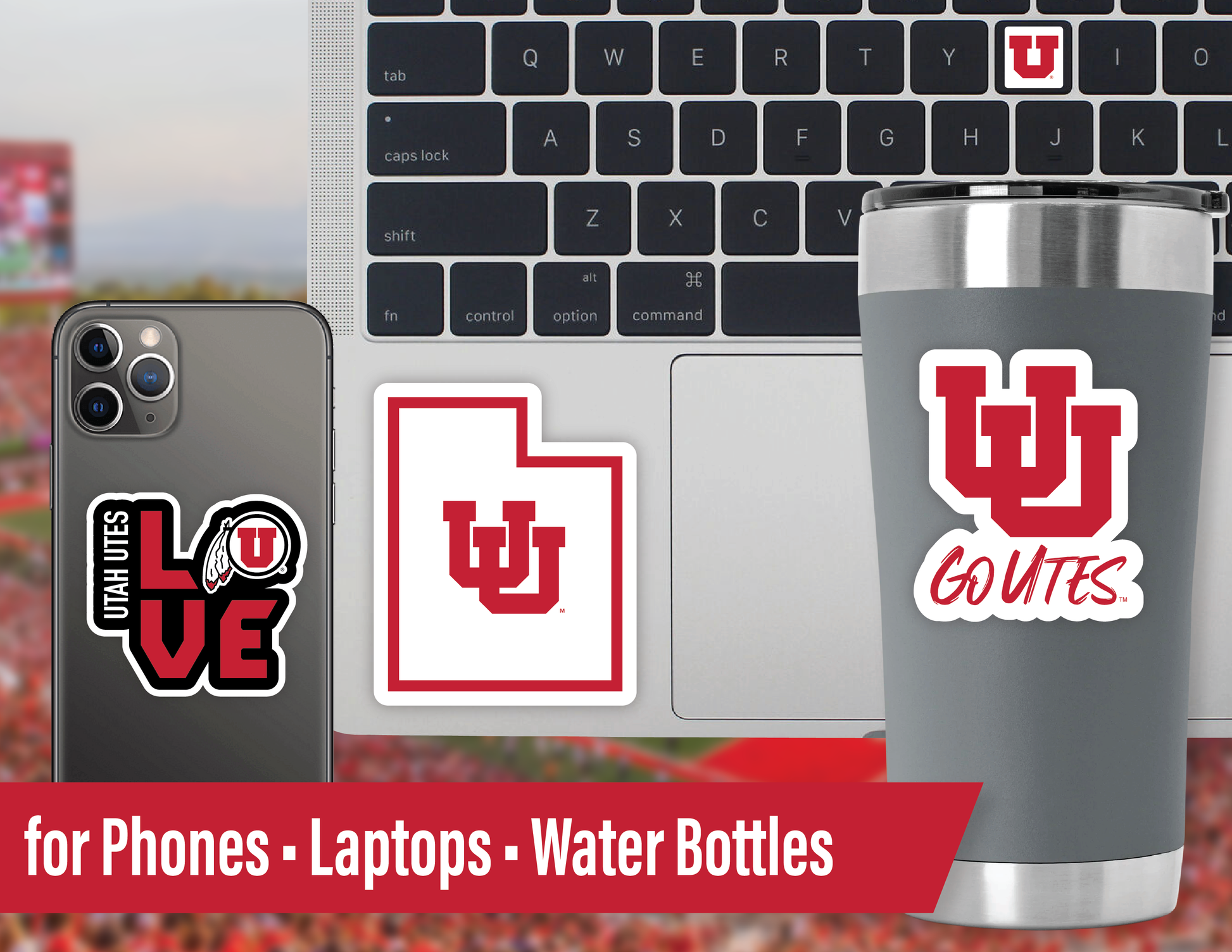Show your pride with University of Utah Utes sticker decals. Sticker set includes 10 mug-sized (3 inch), 2 car window sized (5 inch), and 2 keyboard-size (mini) U of U die-cut decals. University of Utah decals are UV resistant and waterproof decals perfect for any flat surface including car windows, water bottles, phone cases, laptops, notebooks, luggage, and more. Designed for interior and exterior use. Perfect Christmas, birthday, graduation gift for Utah Utes fans of all ages. Go Utes!